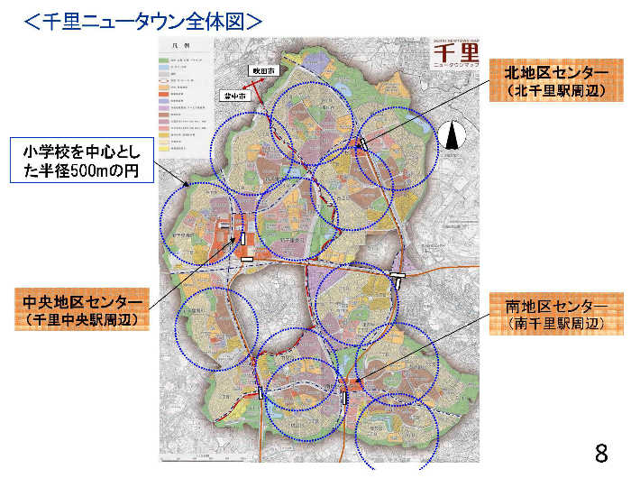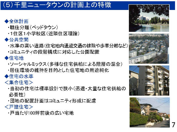 イギリスのニュータウンは職住近接ですが、千里ニュータウンをはじめ日本のニュータウンは都市に近いところに建設されたため、職場のある都市に通うベッドタウンです。