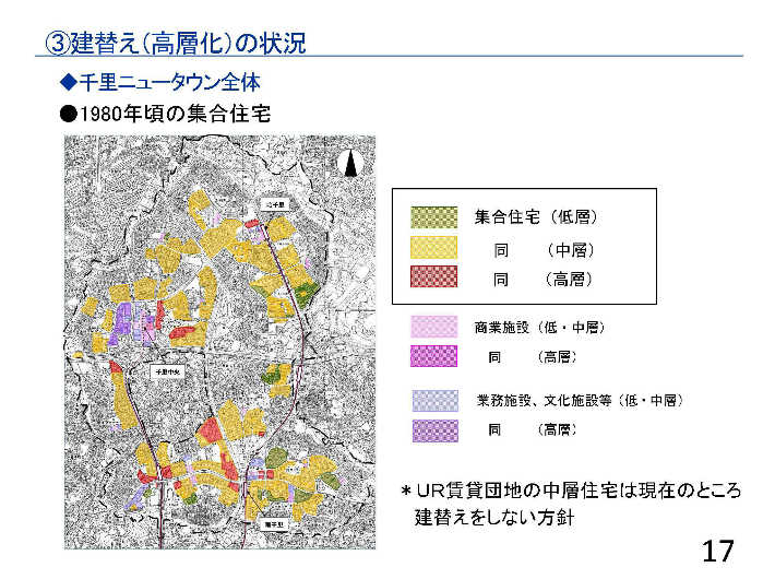 ・公団(UR)が建てた中層は建て替えない方針になっています。