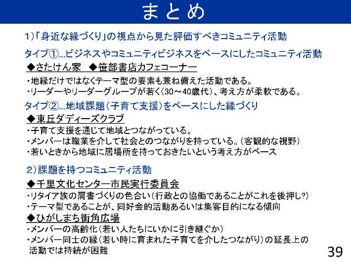 ・「身近な縁づくり」として評価すべきコミュニティ活動